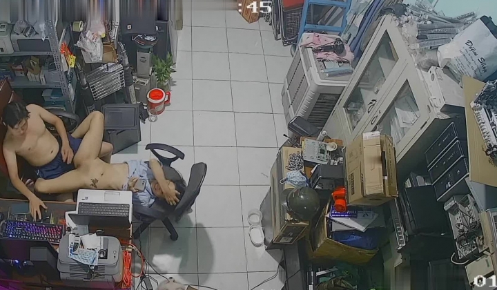 黑客破解摄像头监控偷拍 电脑维修店内夫妻口爆啪啪 超刺激!